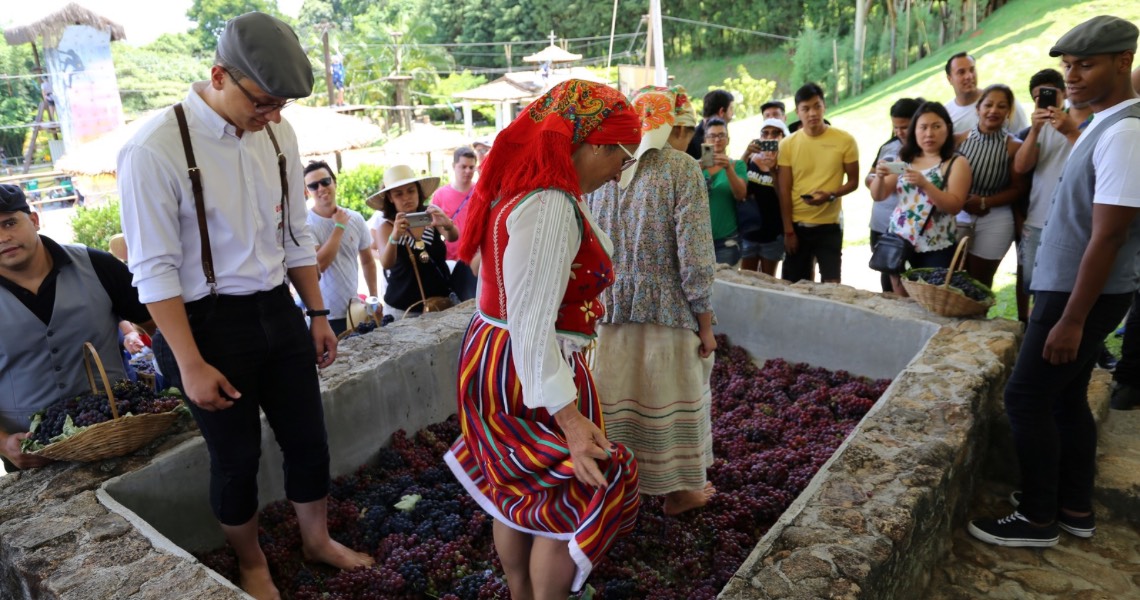 Realizada há mais de uma década na propriedade localizada na Estrada do Vinho, Km 4, a Pisa da Uva da Quinta do Olivardo preserva técnicas tradicionais trazidas pelos colonos madeirenses. Com mais de 8 mil pés de uva plantados em uma área de 2 hectares, o espaço mantém viva a prática do esmagamento das uvas com os pés, método que, segundo especialistas, extrai mais suco, cor e polifenóis, resultando em um vinho de qualidade superior.